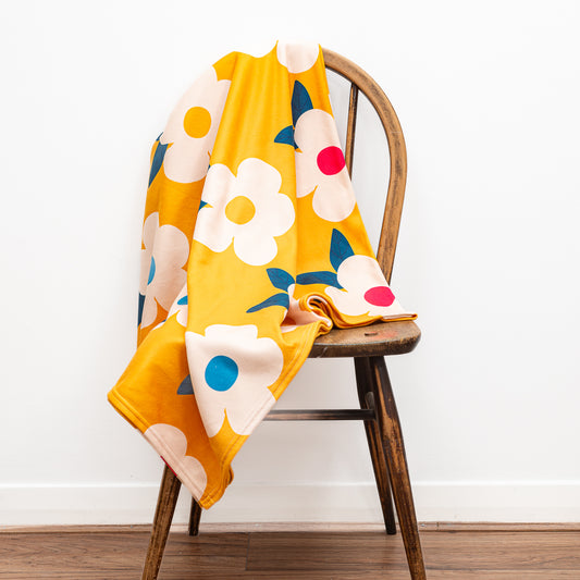 Retro Floral Honey Yellow Mustard Large Fleece Blanket/Throw - Enamelhappy