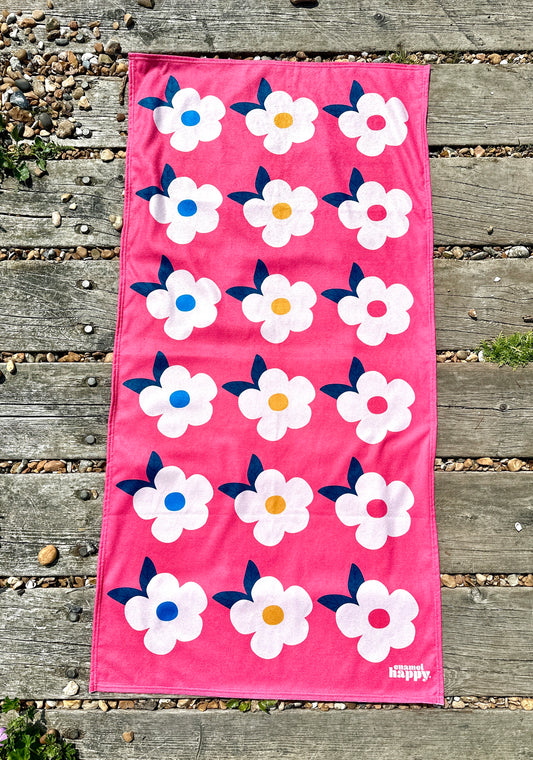 Retro Floral Rose Pink Beach/Bath Towel - Fast-Drying & Large