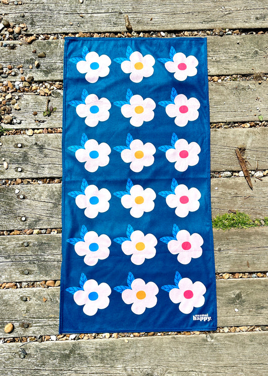 Beautiful Quick Dry Beach/Bath Towel Large - Retro Floral Ocean Blue