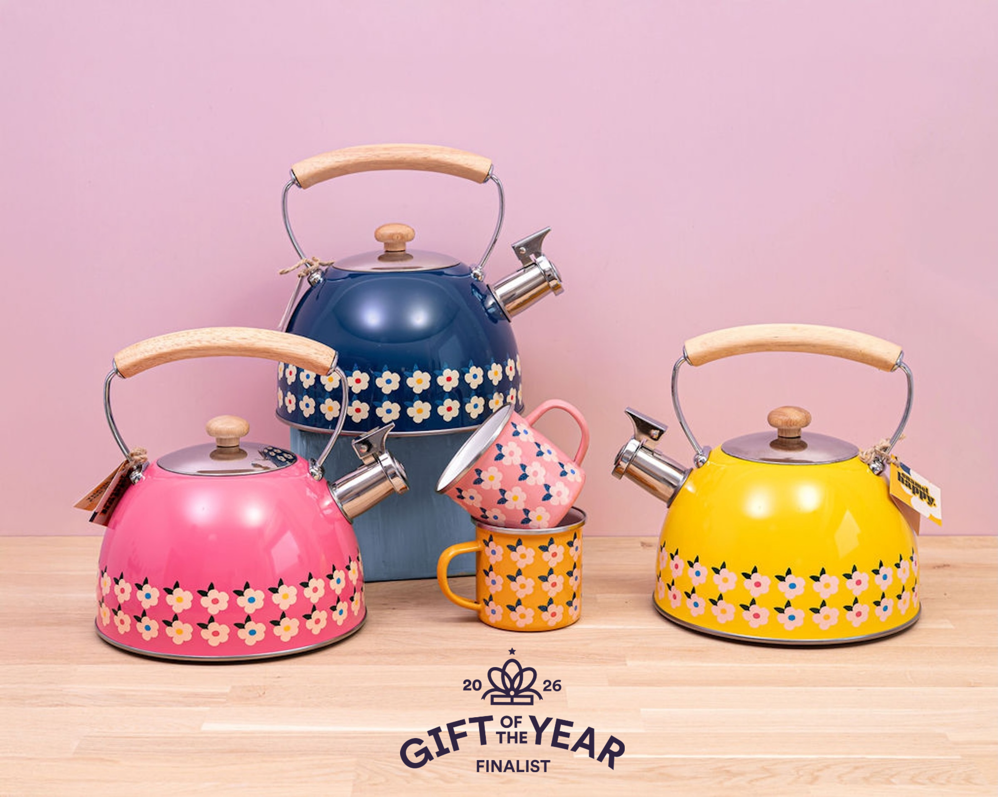 2.5L Whistling Kettle Stainless Steel Midnight Navy Blue Floral - Enamelhappy
