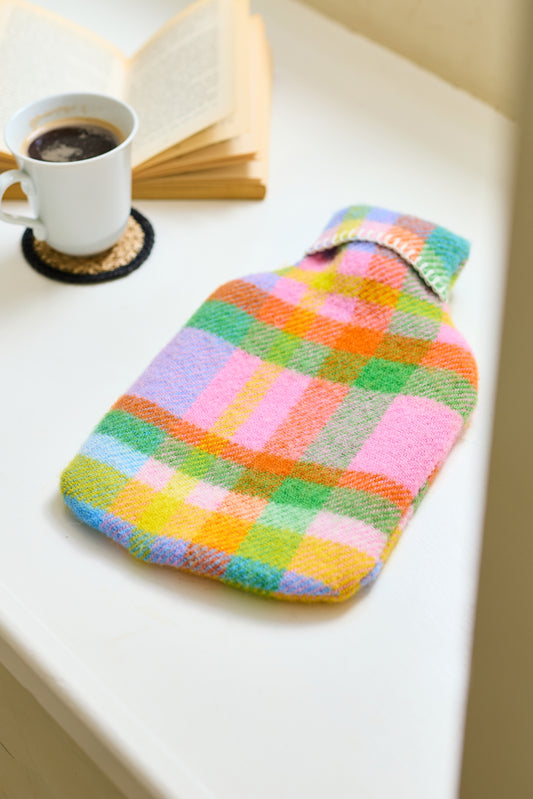 Pure New Wool Hot Water Bottle Bright RainBow Check